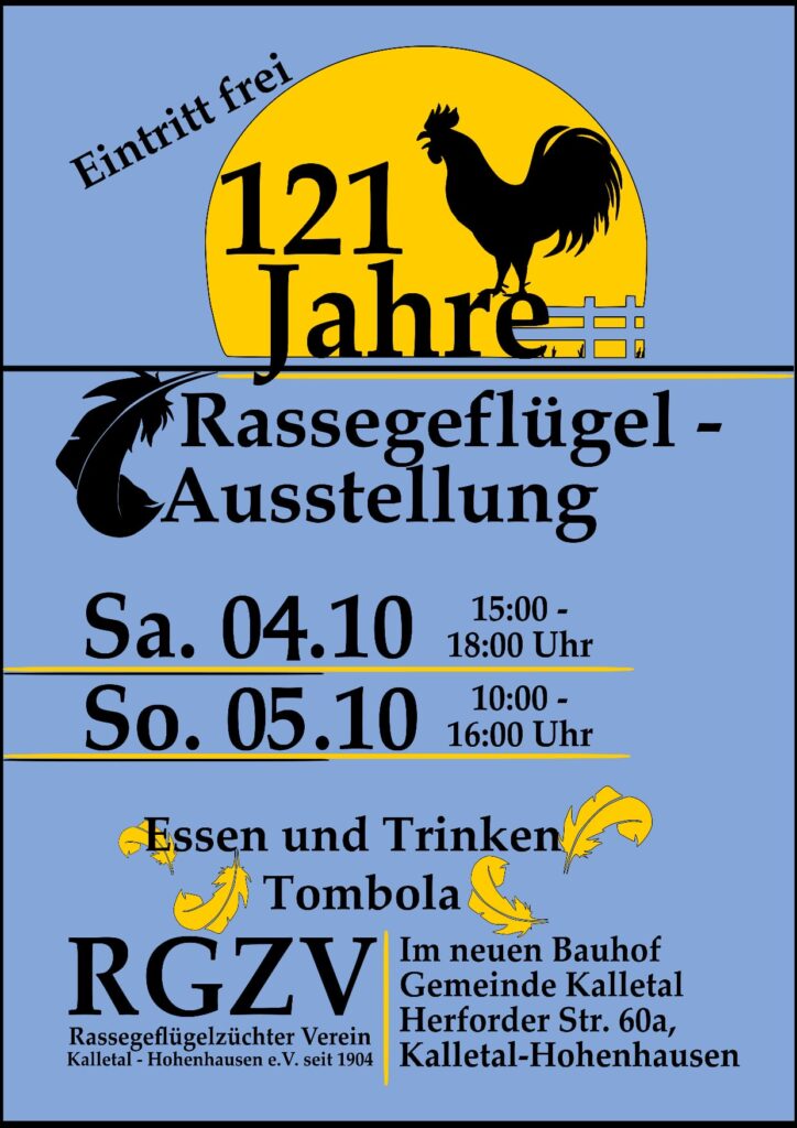 Schön, dass du uns gefunden hast. Wir sind der Rassegeflügelzuchtverein Kalletal-Hohenhausen und Laden dich ganz herzlich zu unserer 121 Jahrsfeier ein!